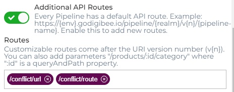 As we can see in the example below, the **/conflict/route** has already been used in a pipeline called **123-run-routes-2**.