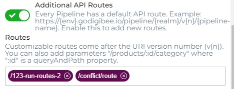 In Run, a warning before deployment informs that the route is already being used in another pipeline. So, you need to change the route in the **API Routes** in **Build** and then deploy it in Run.