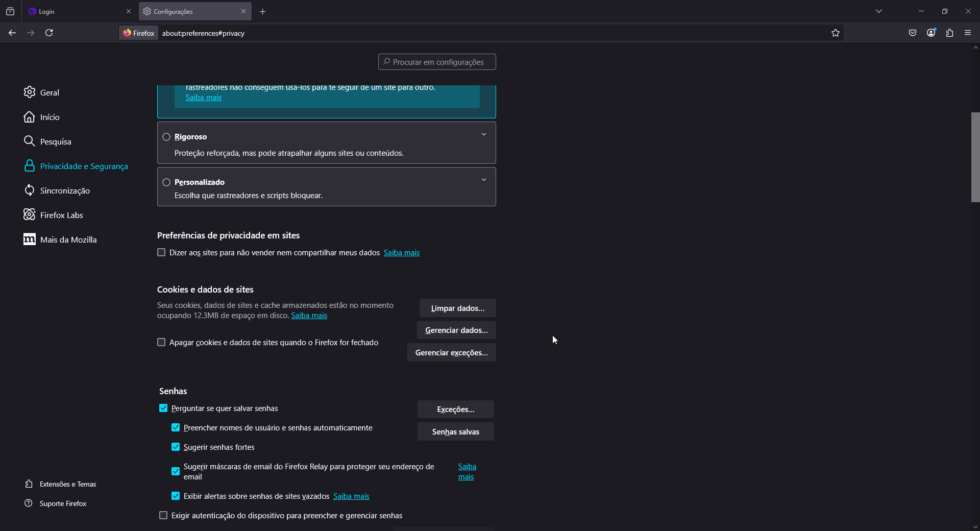 2. Acesse o painel **Privacidade e Segurança** e vá até a seção **Cookies e Dados de Sites**.
