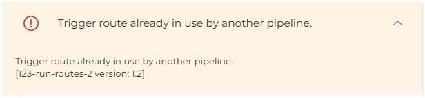 Outro aviso que aparece quando uma implantação está para ser feita, mas é encontrado um erro, é quando é usada uma rota que já existe em um *pipeline* diferente.