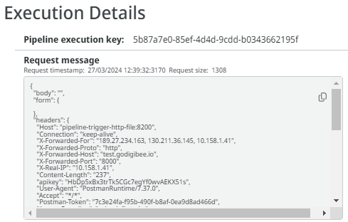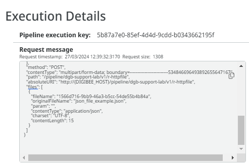 Após receber o payload com o **HTTP File Trigger**, você pode acessar a página **Monitor** para ver os [**Detalhes da Execução**](https://app.gitbook.com/s/cO0A6g1dOsu8BiHYqO67/development-cycle/dashboards/completed-executions). Perceba que o payload é recebido como um arquivo e não no corpo da requisição. Neste contexto, o corpo da requisição está vazio.