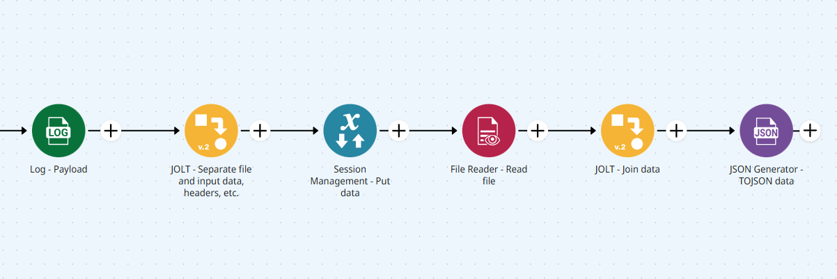 É necessário fazer um tratamento especial no fluxo para acessar o arquivo. Uma abordagem comum é salvar os dados de input da requisição em um conector [**Session Management**](https://app.gitbook.com/s/SKBJ6ZiEWBU93x170HH4/connectors/structured-data/session-management), preservando detalhes como `Headers` e `QueryAndPath`.