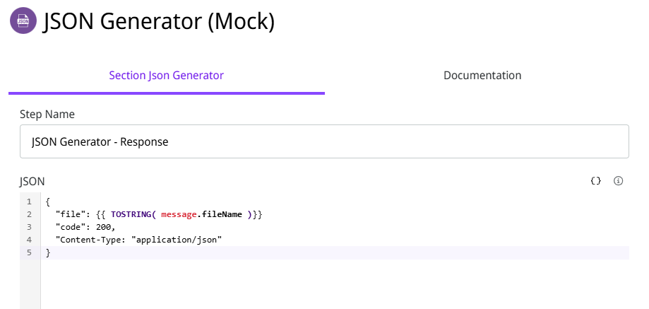 <figure><img src="https://content.gitbook.com/content/3ANg0NQQeslB7Og5K7Ah/blobs/vDEyDypdbvIeHaQ5q3Z8/JSON%20Generator%20(Mock)%20-%20Response.png" alt=""><figcaption></figcaption></figure>